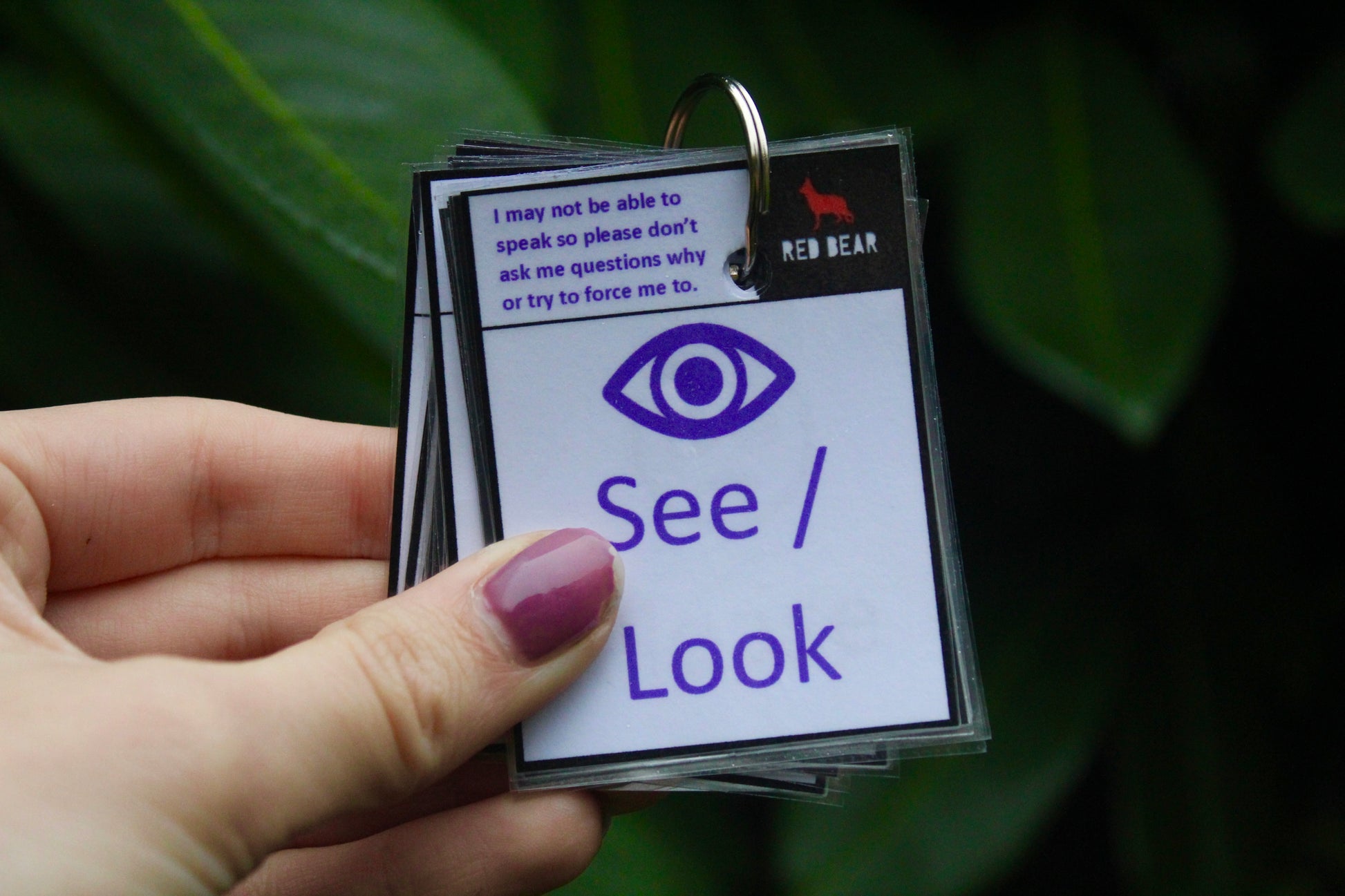 This thirty-two-piece card set explains that the holder of the cards may be non-verbal or struggle to communicate their needs. This communication set allows them to tell others what they might need or how they feel in the event of them not being able to express themselves verbally. They allow the holder to explain their needs in a simple and quick format for others to understand.