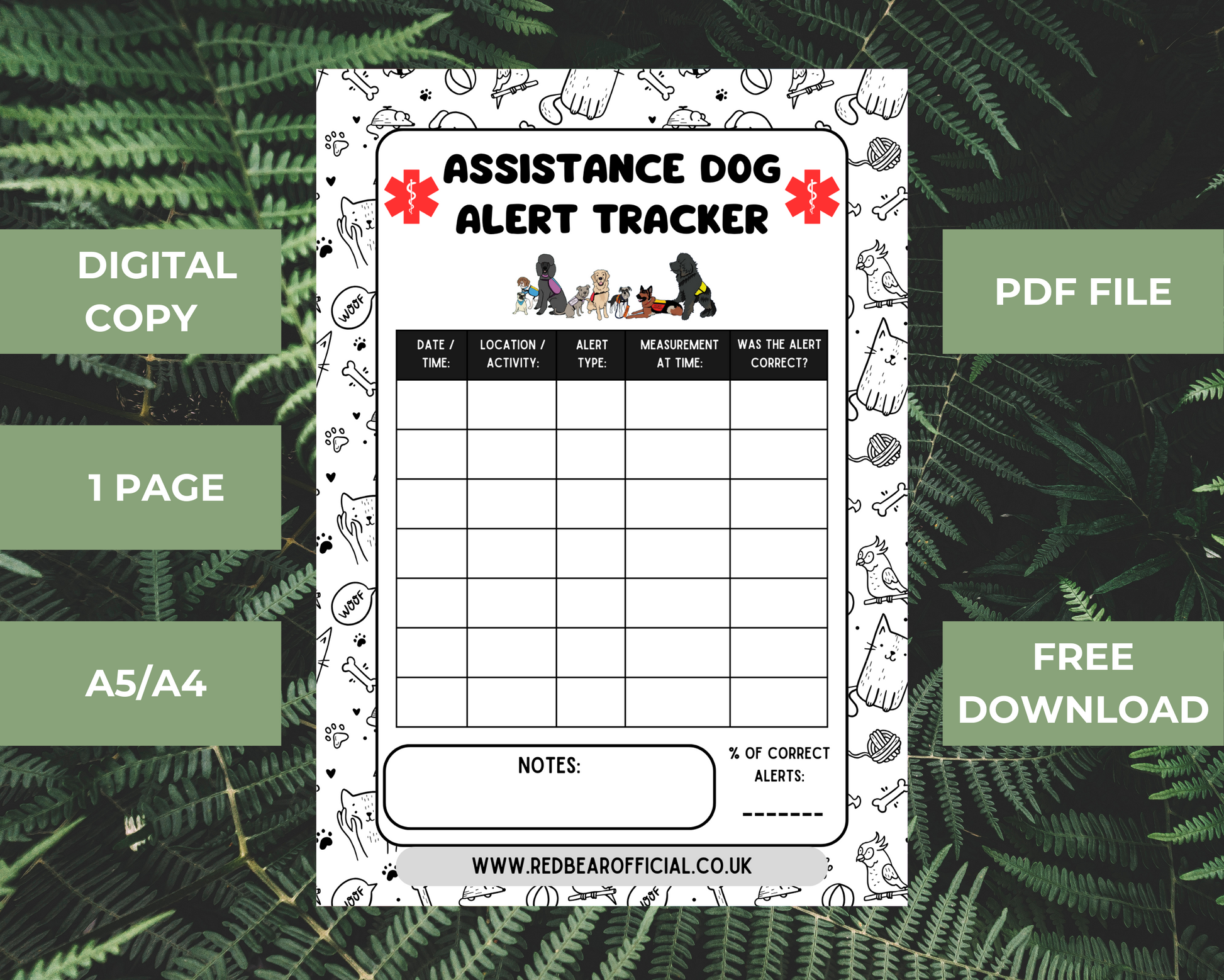 Assistance dog alert tracker | FREE DIGITAL DOWNLOAD