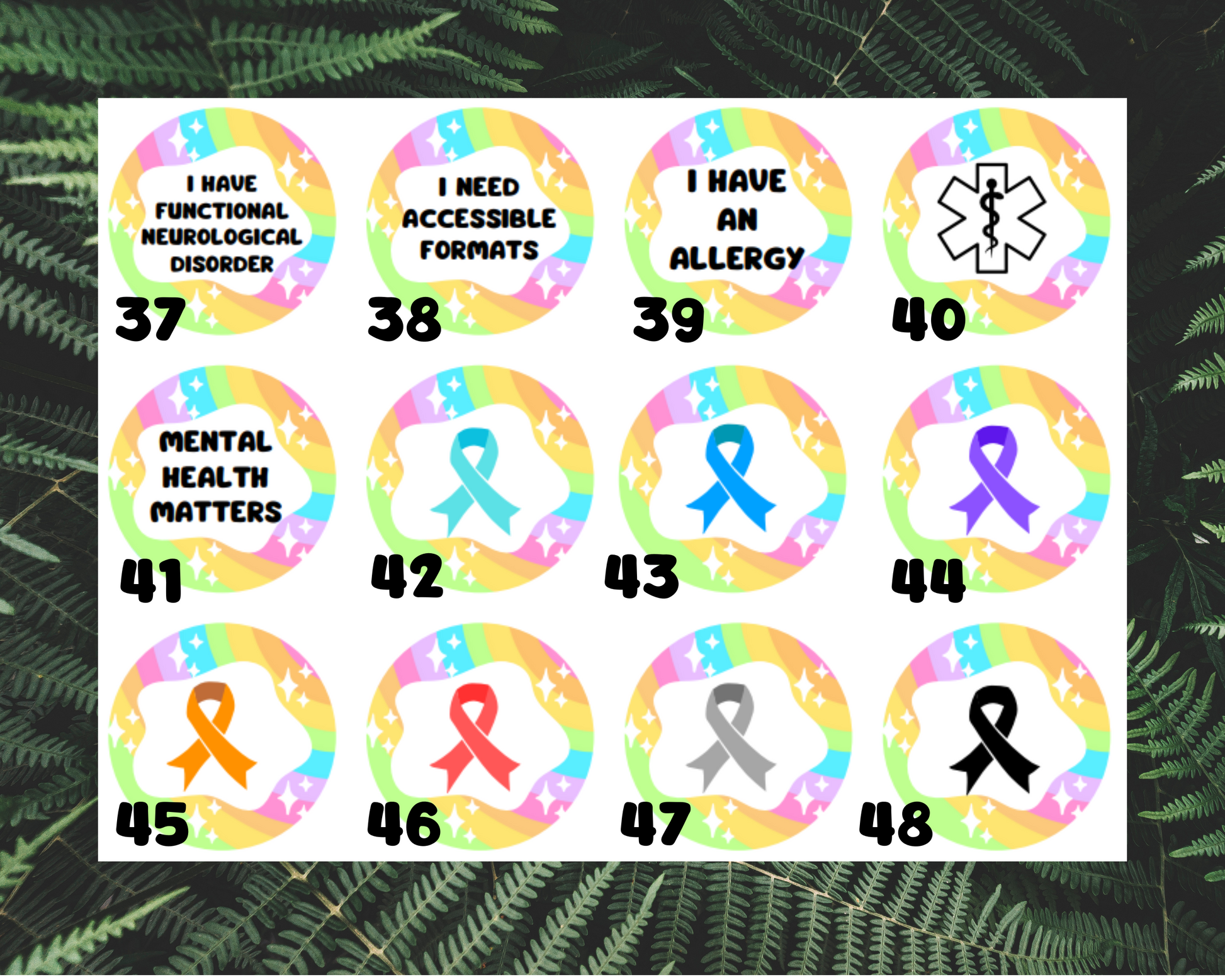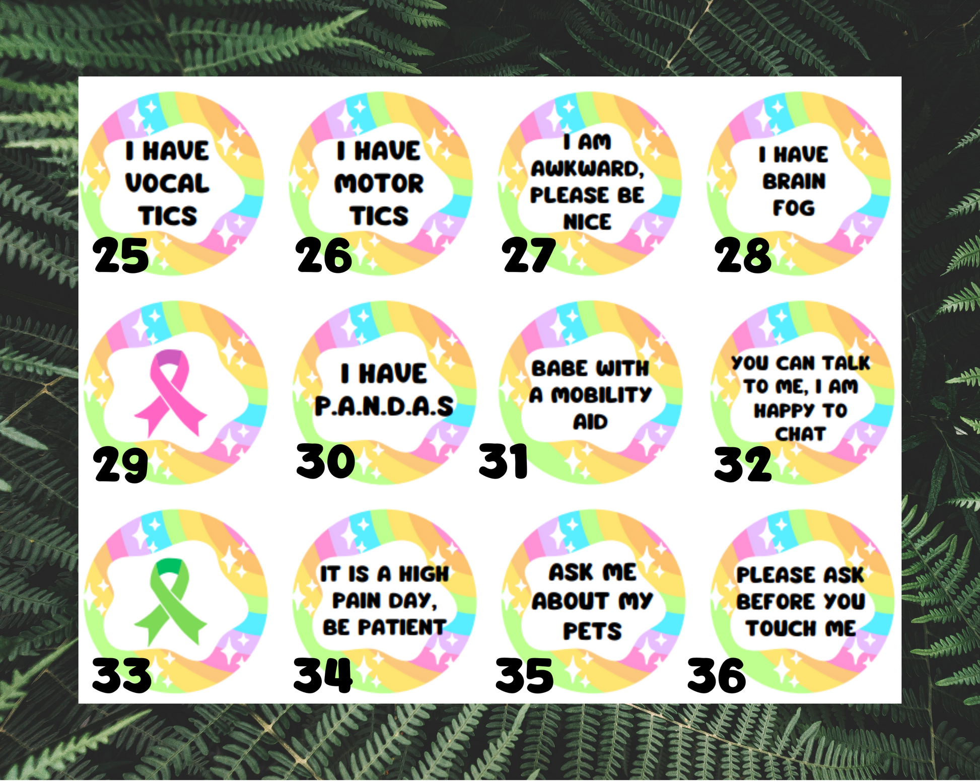 Rainbow disability | chronic illness | autism 32mm pin badges | 48 different designs